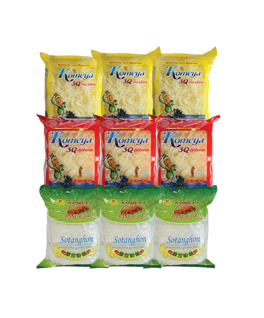 Komeya continues to innovate to meet the needs of a growing market. Aside from Bihon, we also manufacture other noodle products, namely Palabok and Sotanghon. Komeya products are widely distributed in various retail outlets like supermarkets, groceries, neighborhood sari-sari stories and wet market stalls. What’s more, customers can also buy our products online through Grabmart, Metromart and Pickaroo. Komeya…proudly Philippine-made bihon and a lot more!